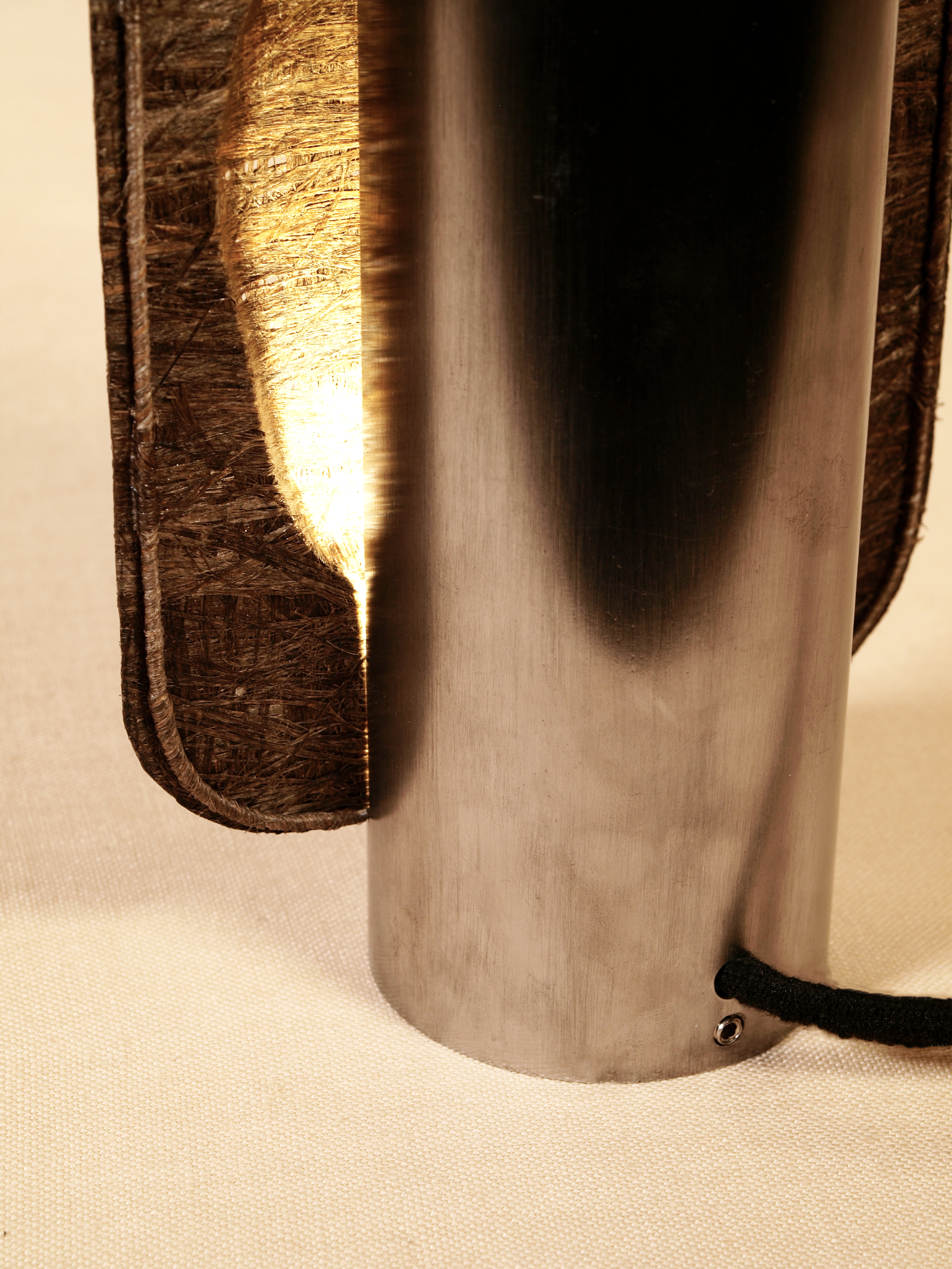 COMME EMPRISONNÉE DANS LA FIBRE, CETTE DERNIÈRE LAISSE SON EMPREINTE LÀ OÙ ELLE PASSE ET SE RÉVÈLE AVEC LA LUMIÈRE. MALGRÉ SON ASPECT INERTE, LA GRAINE PREND VIE.